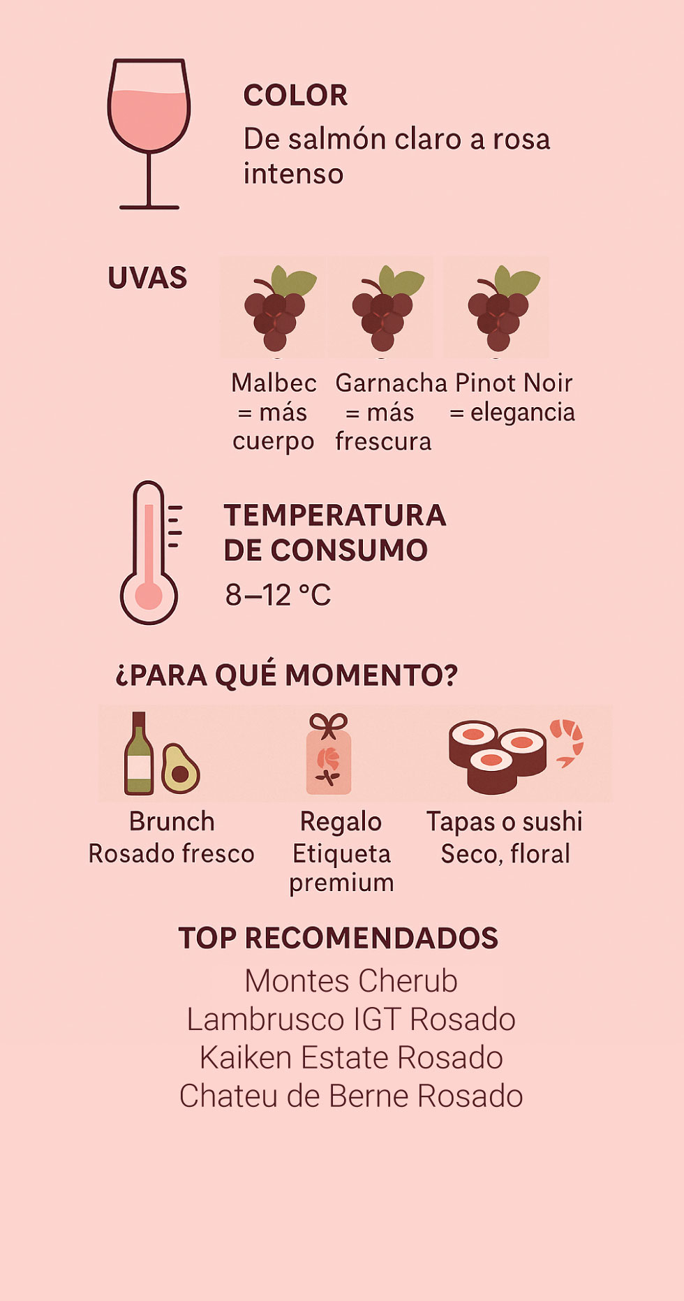 - Syrah: Rosados más especiados y profundos, como el Montes Cherub, que ofrece una experiencia compleja y seductora.