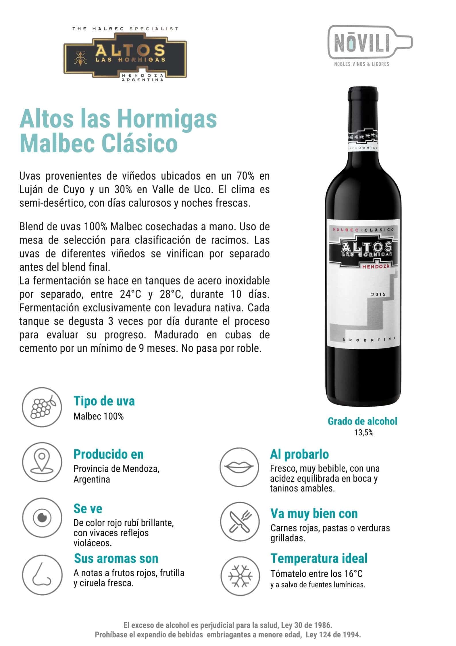 - Tipo de copa: disfruta al máximo tu Altos Las Hormigas Malbec en una copa Burdeos