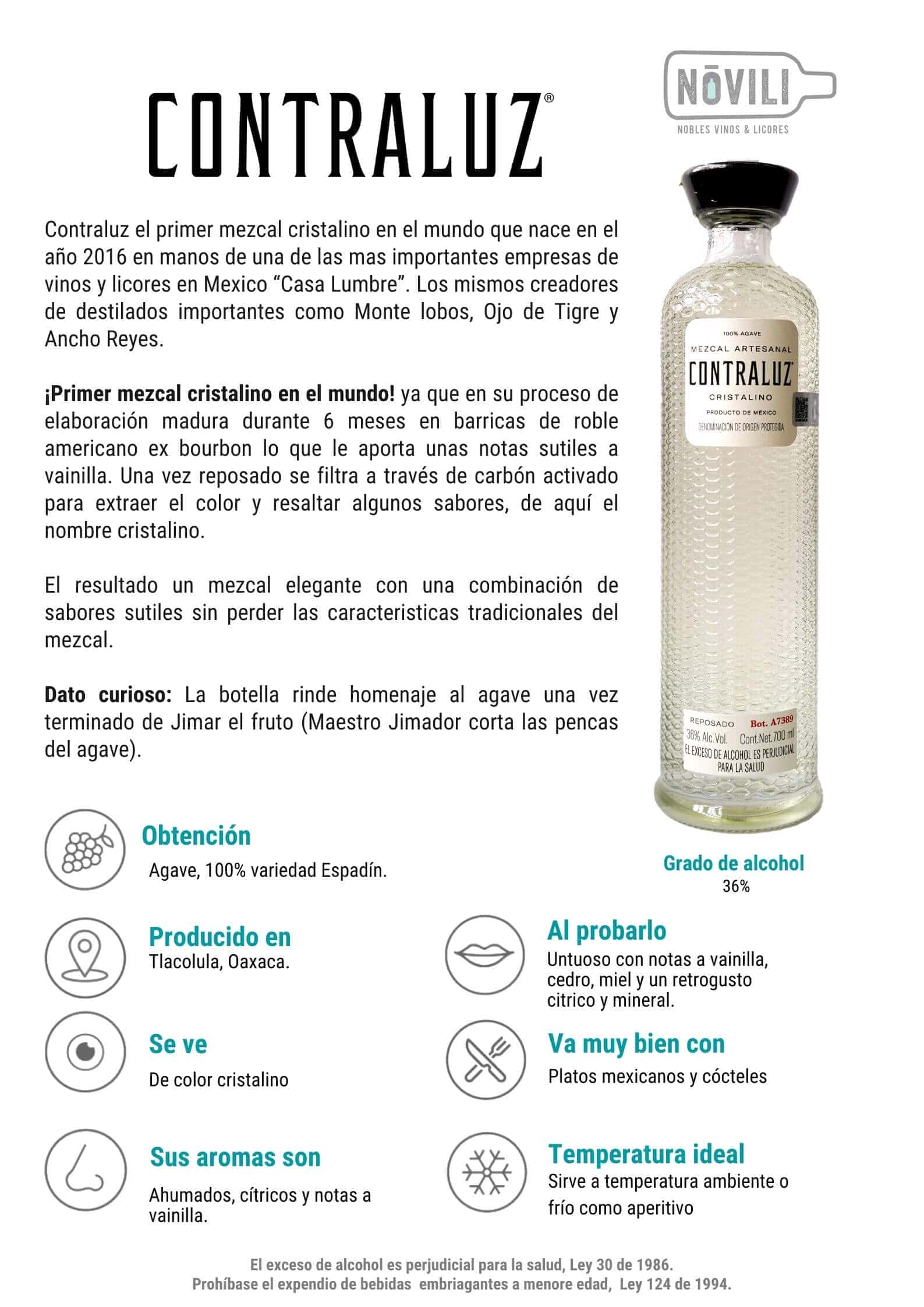 Tlacolula, Oaxaca, tierra de las mejores mezcales, es la cuna de otro grande: Contraluz. ¿Estás buscando el brindis perfecto para compartir con tus amigos del alma? Ya lo encontraste. Para todo mal, mezcal… ¡Para todo bien, también! Disfruta este mezcal 100% espadín.