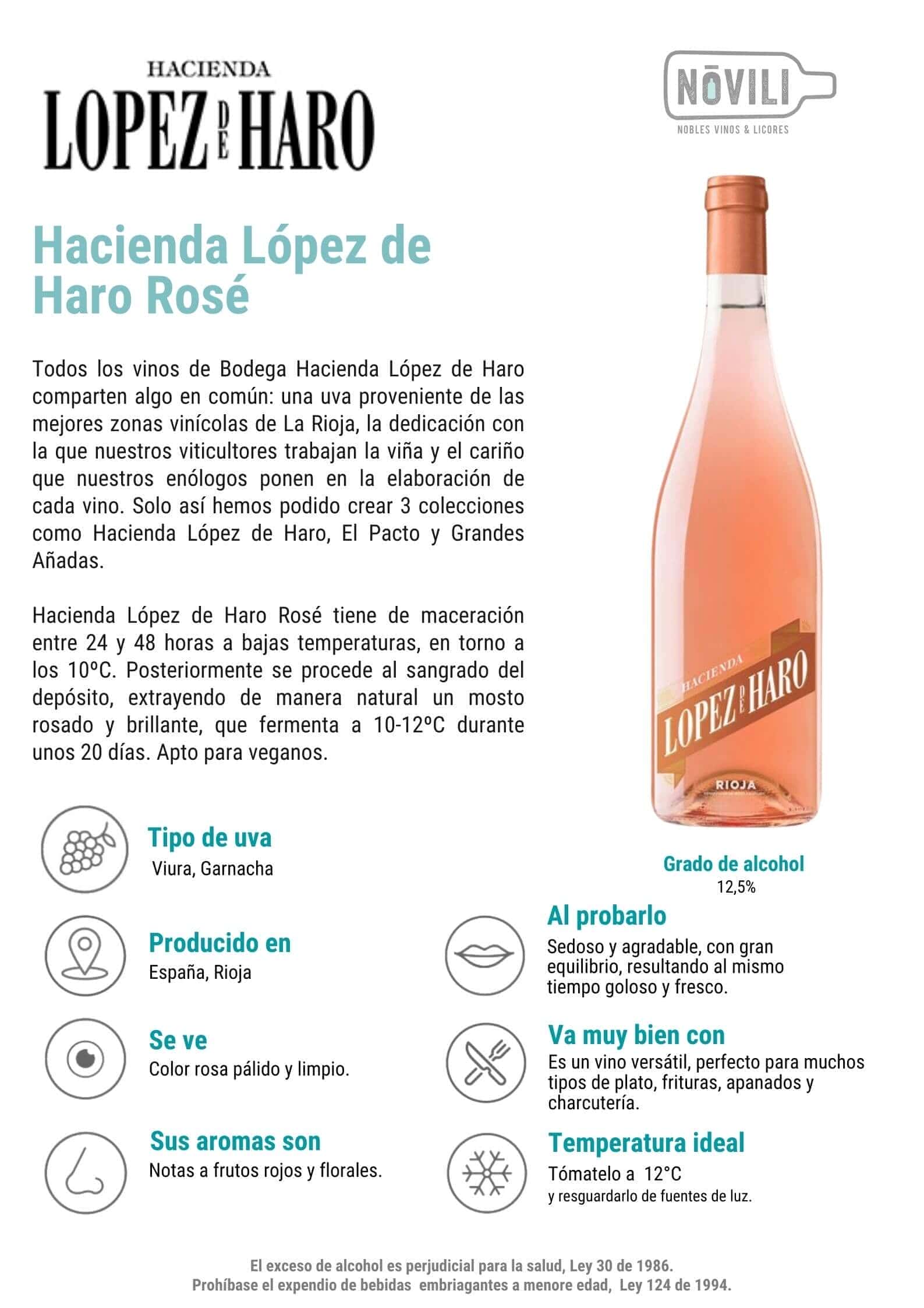 - Temperatura ideal: disfruta más tu botella de Hacienda López de Haro Rosado a una temperatura de 12°C.
