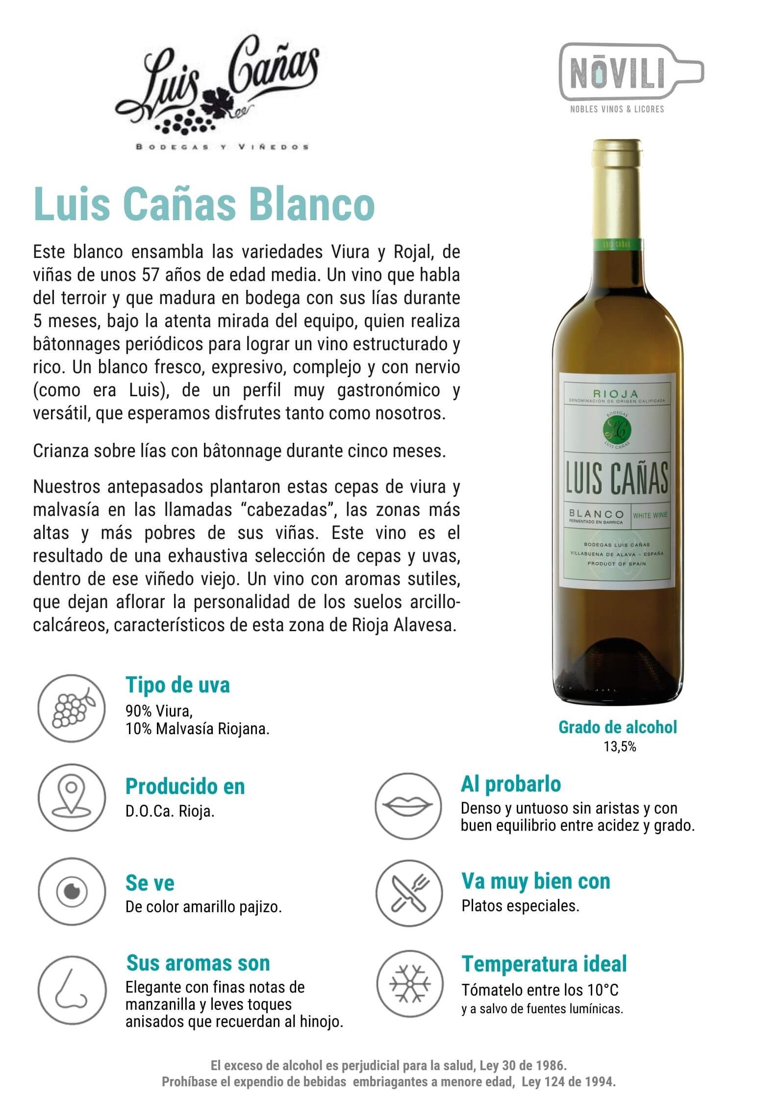 - Temperatura ideal: sirve tu Luis Cañas Blanco a una temperatura entre los 12 y 13°C.