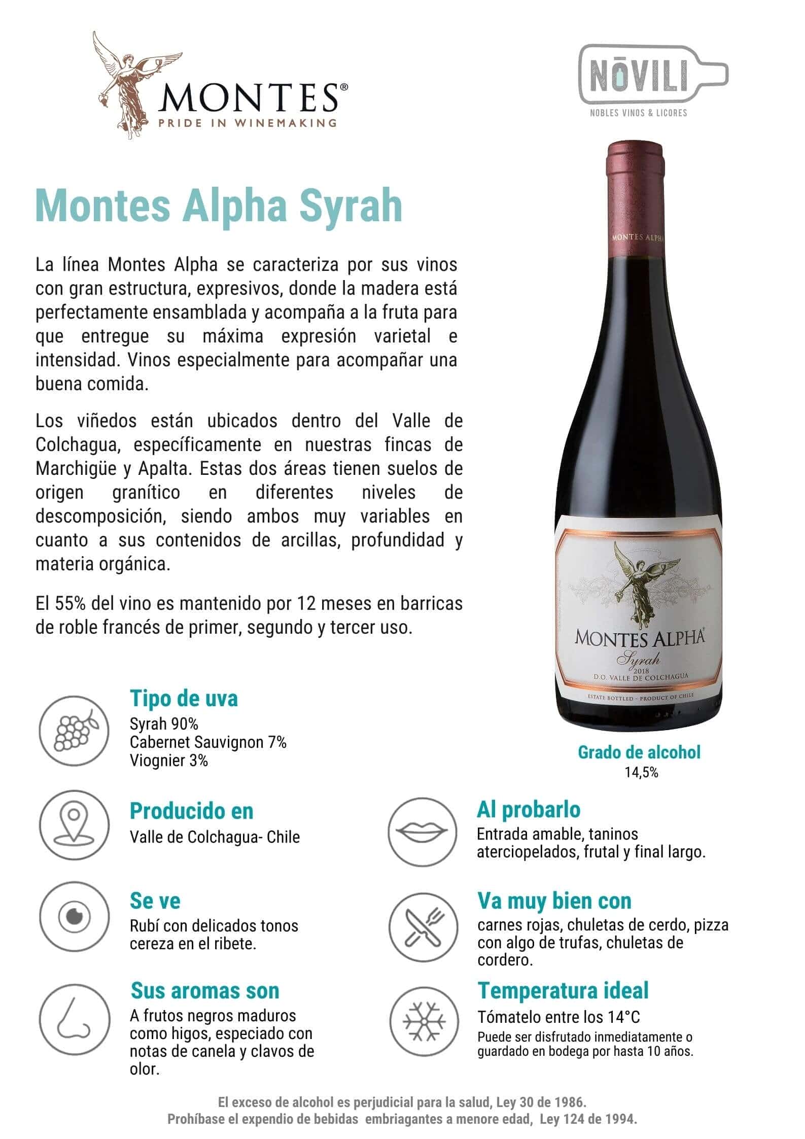 - Temperatura ideal: disfruta más tu Montes Alpha Syrah a una temperatura entre los 17 y 19°C