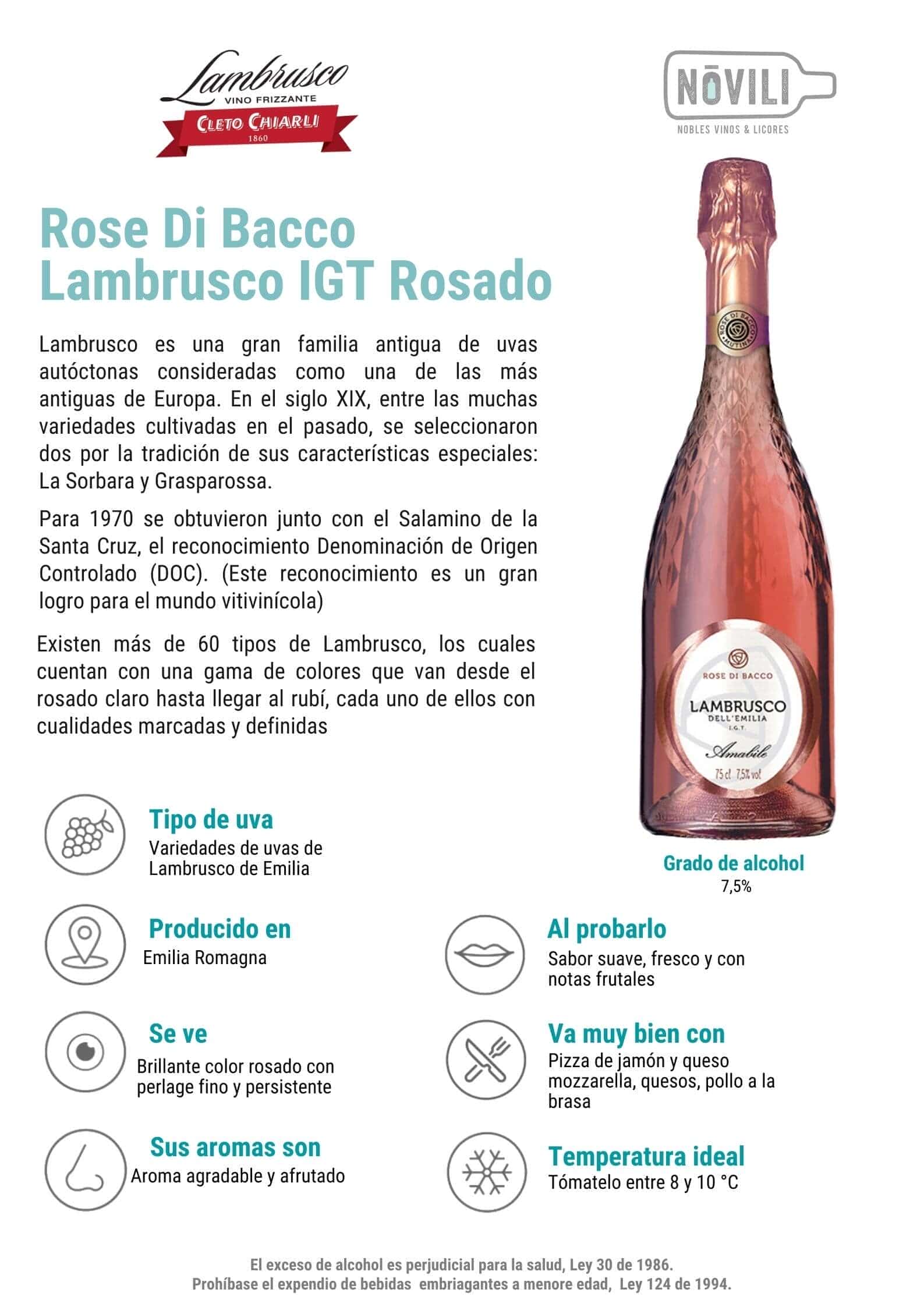 Momentos Nóvili para tu Lambrusco Rose Di Bacco Rosado