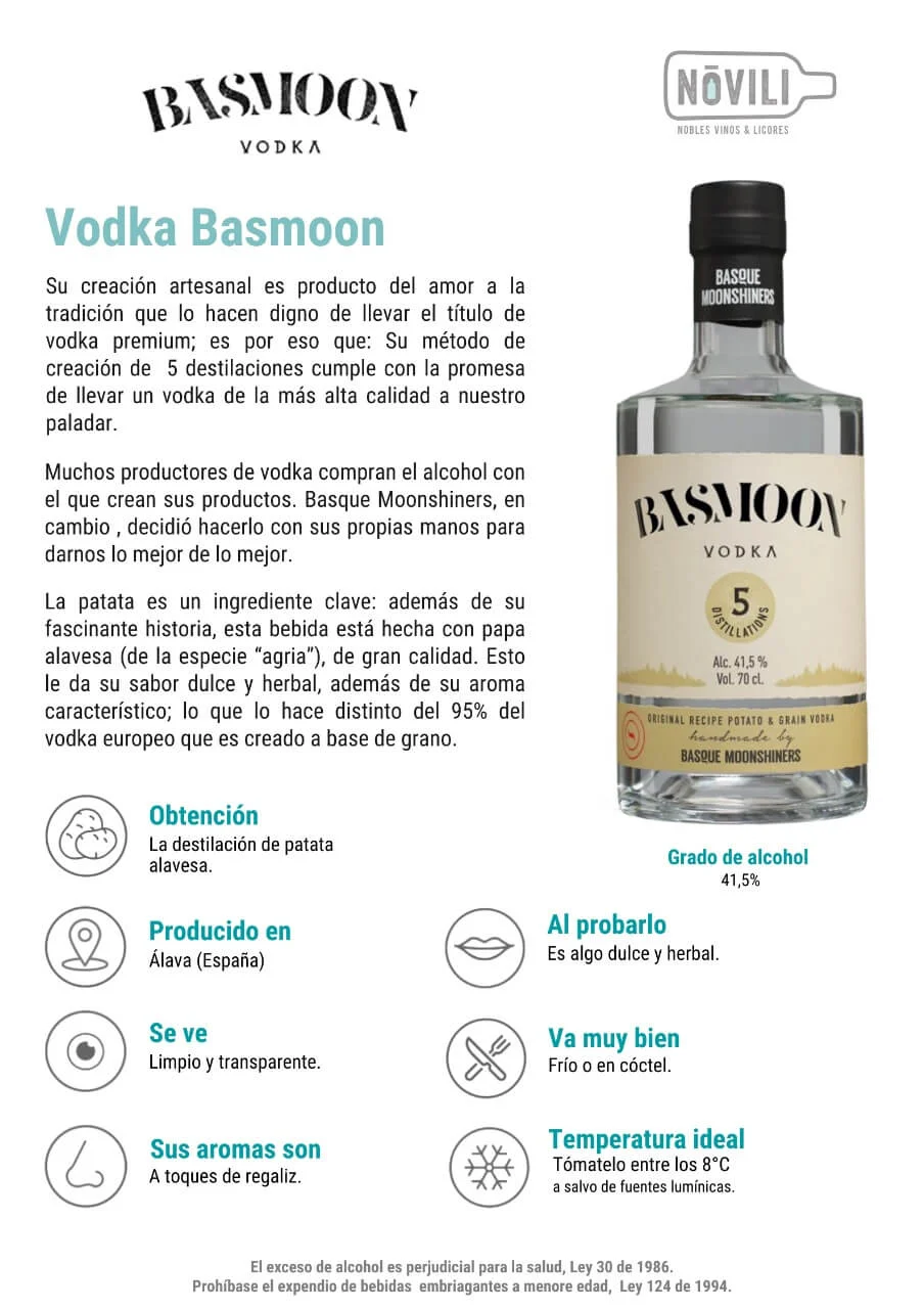 ¡Verdaderamente auténtico! Así es el Vodka Basmoon. Proveniente del País Vasco, este vodka es realizado con patatas alavesas de manera 100% artesanal. El resultado es único y lleno de sorpresas; un licor premium absolutamente único que reinventa y lleva a un nuevo nivel el vodka. El que lo prueba, repite. Eso es seguro.